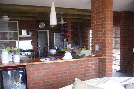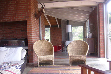 The decor and design of this lodge brings the owners home to a real farmhouse with natural finishes. The use of brick mortar and crate planks gives you that classic farm-style feel.